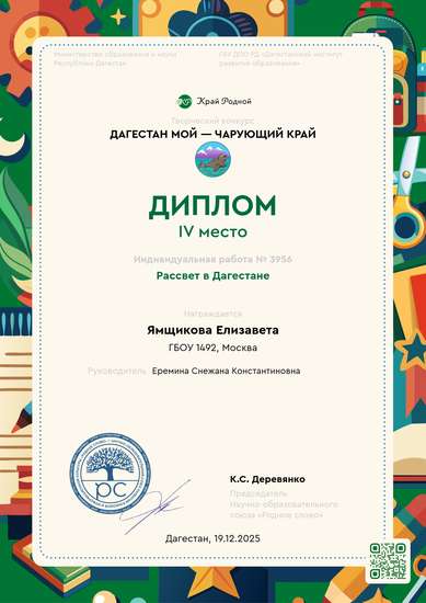 IV место на конкурсе Дагестан мой — чарующий край