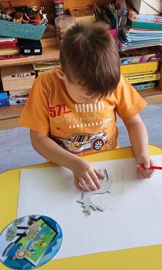 Ребенок обводит силуэт оленя.
