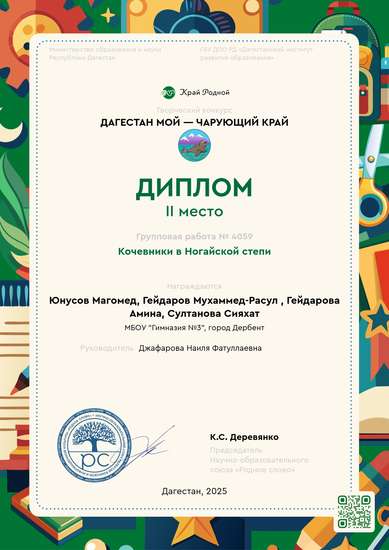 В этом проекте мы смастерили не только юрты ногайцев, но и добавили в наш проект верблюдов, деревья,и народ Дагестана. Проект был выполнен за два занятия. Мы сделали несколько юрт,чтобы можно было построить поселение В процессе работы дети: 1. Вырезали выкройки стен юрты и обвели их на картоне или плотной бумаге. 2. Склеили прямоугольники боковыми клапанами внахлёст 3. Чтобы юрта стала войлочной, взяли 1–2 хозяйственные салфетки из нетканого материала. 4. Смазали клеем ПВА или клеящим карандашом часть стены по длине салфетки. Наклеили салфетку, оставив нетронутым боковой клапан. Лишнюю салфетку аккуратно обрезали. 5. Взяли тесьму с узором и приклеили ее узором вдоль длинных сторон стены. 6. Вырежи выкройку дверной рамы и наклей её на картон. Смазали клеем правый и левый клапаны стены и приклеили к ним дверную раму.