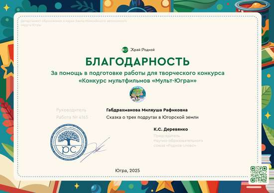 Волшебная история о дружбе, тайнах тайги и сокровищах родного края. В лесах таежный-болотистой части Югры преобладают гордость нашего края могучий кедр с полезными орешками и ценной древесиной, ель, лиственница, сосна и береза. Югорская земля так велика и так щедра на тайны, что хватает их сотни историй. Впереди путешествие по тайге. Ссылка на мультфильм:https://disk.yandex.ru/i/Akl2u5X-R0on7A