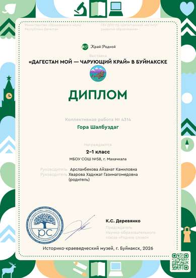 Руководители:Хварова Хадижат Газимагомедовна (родитель), Арсланбекова Айзанат Камиловна