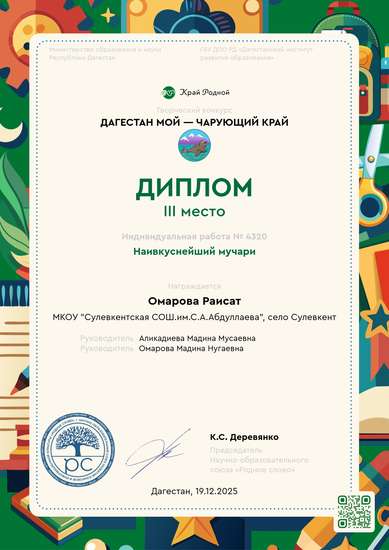 Учебное заведение:МКОУ "Сулевкентская СОШ.им.С.А.Абдуллаева"