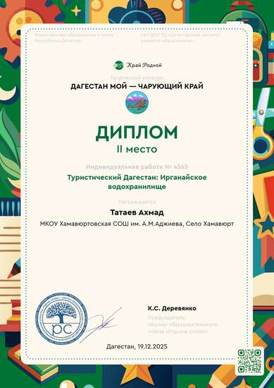 Учебное заведение:МКОУ Хамавюртовская СОШ им. А.М.Аджиева
