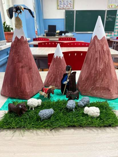 В номинации "Тайны горных вершин" мы хотели показать красоту и величие Дагестана. Раджабов Хабиб сделал горы из бумаги и раскрасил их красками, слепил из пластилина. С помощью взрослых из глины слепил чабана, овец и бычков. Слова Расула Гамзатова о горах очень символичны "Жители гор переняли нрав гор, а горы нрав жителей". Нам интересна тема гор, потому что горные пейзажи завораживают и дарят незабываемые впечатления.