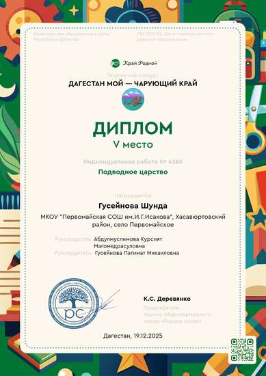 Участник, загрузивший работу:Абдулмуслимова Курсият Магомедрасуловна