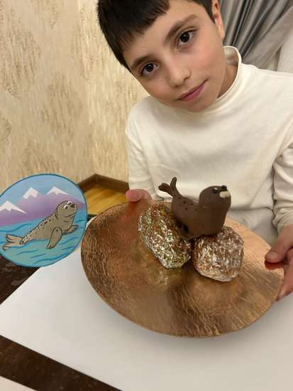 Каспийский тюлень - эндемик, индикатор здоровья всей экосистемы Тюлень умеет ловко взбираться на камни. Рисунок выполнен в теплых тонах. Тема позволяет наглядно показать детям связь: " моё действие - влияние на природу". Тема конкурса позволяет не просто рассказать о проблеме, но и показать путь ее решения через действия каждого человека.