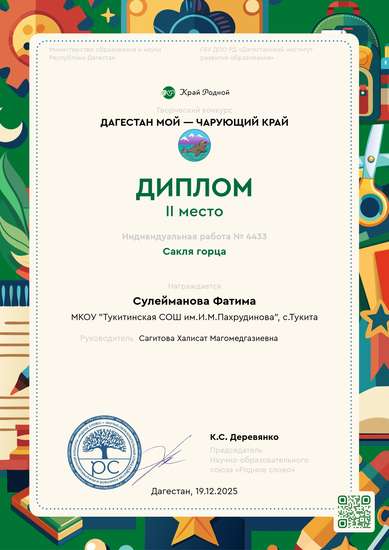 II место на конкурсе Дагестан мой — чарующий край