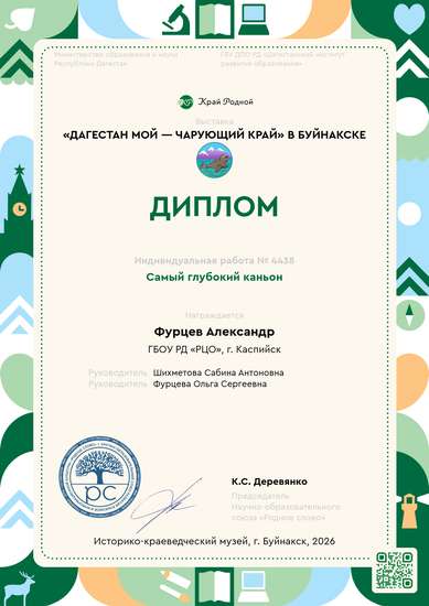 Сулакский каньон завораживает своим видом. Он поражает бирюзовой водой, скалами и своими потрясающими панорамными видами. Огромное количество туристов едет в Дагестан, чтобы увидеть невероятной красоты каньон. Каждый раз, когда я приезжаю сюда, меня очаровывает его красота и мощь. В данной работе Саша на начальном этапе окрасил рамку, далее поместил маленький катерок на реку Сулак. Следующим этапом работы была техника папье - маше, из них он сделал ущелье каньона, разместил камешки. После того, как это все высохло, окрасил ущелье красками, добавил траву, покрасил катерок. Мама и учитель делали реку Сулак из эпоксидной смолы, смесь для ущелья.
