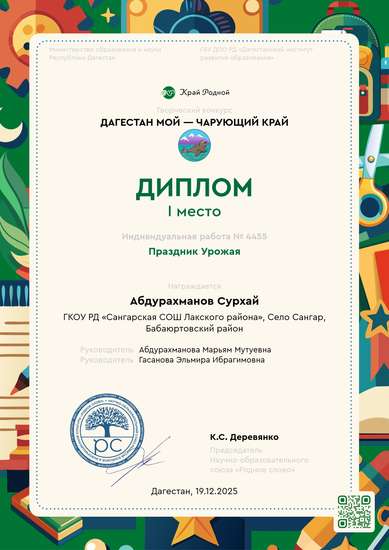 Участник, загрузивший работу:Абдурахманова Марьям Мутуевна
