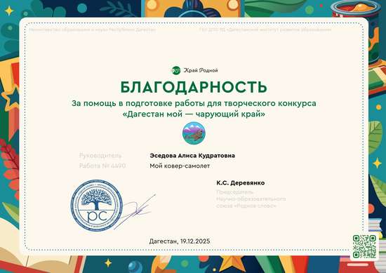 Участник, загрузивший работу:Эседова Алиса Кудратовна