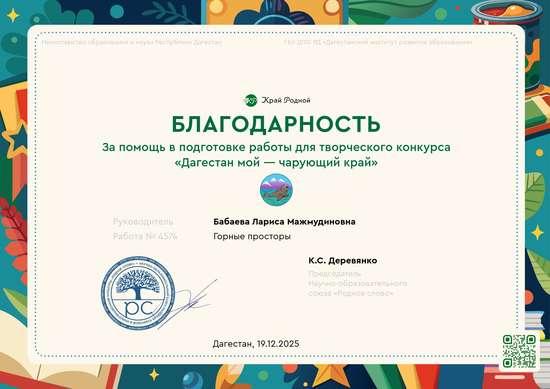 Участник, загрузивший работу:Бабаева Лариса Мажмудиновна