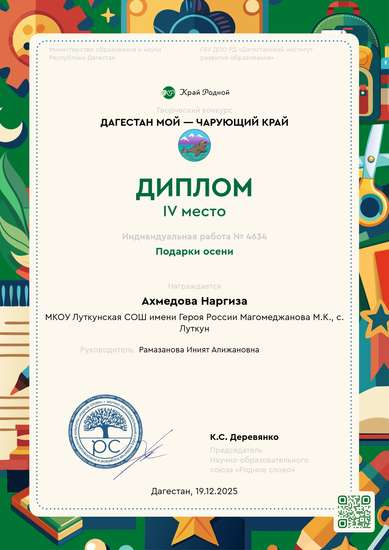 Участник, загрузивший работу:Рамазанова Иният Алижановна