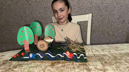 Дети очень любят экспериментировать с разными материалами , используя старые и изучая новые методики. В ходе творческой работы " Подарки осени" ученик вырезал , склеивал, лепил и разукрашивал разные детали поделки. В селе Луткун очень красивая осенняя пора , поэтому решили сделать поделку на такую тему. С помощью цветной бумаги ученик сделал реку Самур, которая богата рыбой .