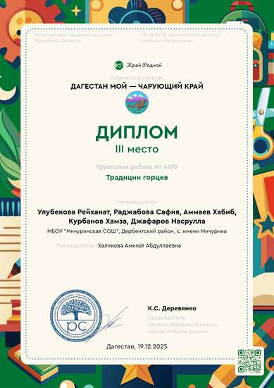 III место на конкурсе Дагестан мой — чарующий край