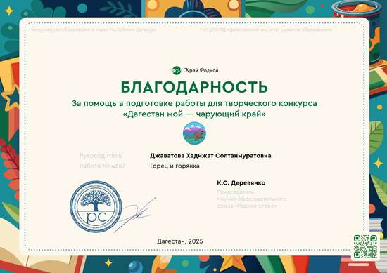 Готовая работаЛегенда «Горянки» — это не одна история, а собирательный образ горской женщины. В дагестанском фольклоре и литературе горянка часто воплощает силу духа, выносливость, мудрость и верность традициям, но при этом может быть и смелой личностью, бросающей вызов устоям во имя любви и справедливости. Образ горянки показан как в трагических, так и в героических ситуациях, отражая сложную жизнь горских женщин в прошлом и настоящем.