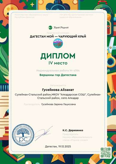 Участник, загрузивший работу:Гусейнова Зарема Лацисовна