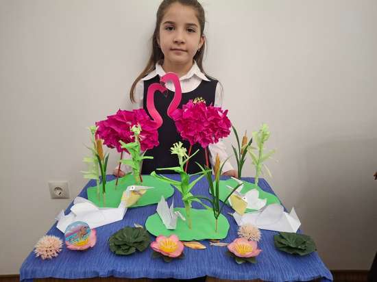 Изготовили камыш, рогоз и фламинго из выкройки с пособия Мой Дагестан.
