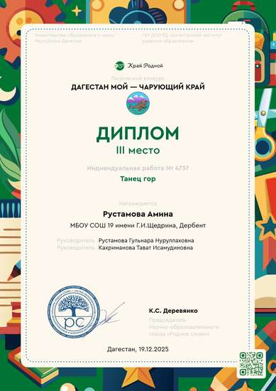 Участник, загрузивший работу:Рустамова Гульнара Нуруллаховна