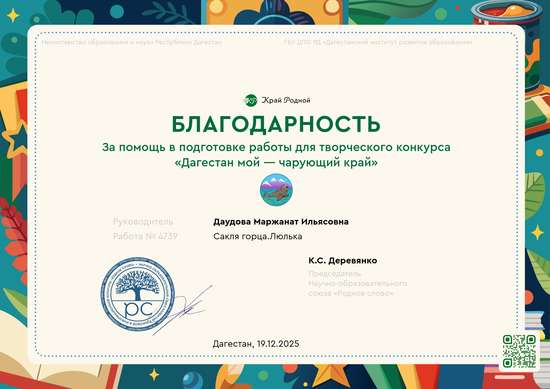 III место на конкурсе Дагестан мой — чарующий край