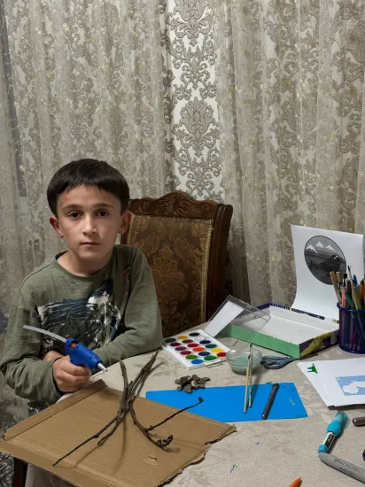 Лезгинка - это не просто танец, а душа Дагестана. Изгибы рук повторяют линии горных рек и ущелий, а стремительные повороты юноши - это словно порывы ветра в горах. Яркие цвета символизируют богатство нашей земли. Красный-это традиции и тепло сердец, зеленый-долины и леса, белый - снежные вершины и чистота помыслов. Танцующие фигурки это ожившая песня наших гор. Моя работа называется "Легенды Дагестана". Для этой работы я использовал бумагу, клей, картон, гуашь.