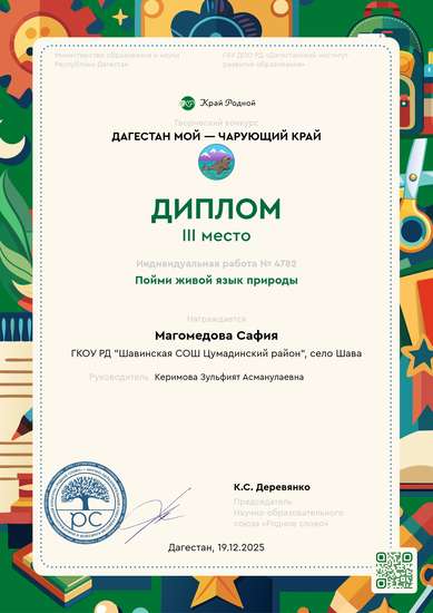 III место на конкурсе Дагестан мой — чарующий край