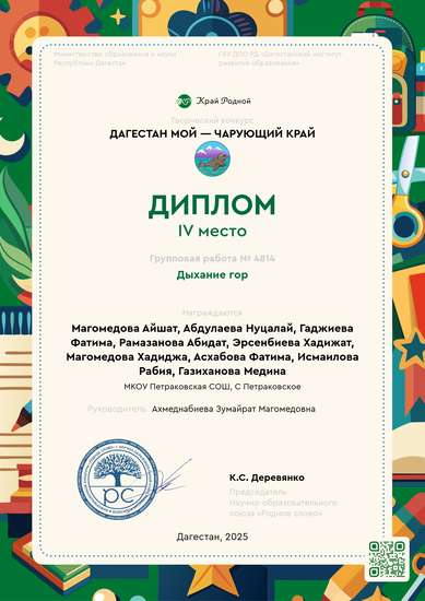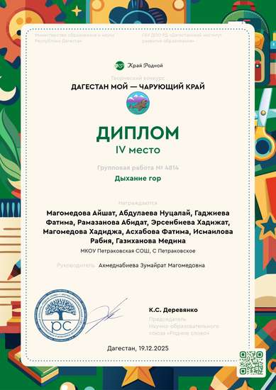 Участник, загрузивший работу:Ахмеднабиева Зумайрат Магомедовна