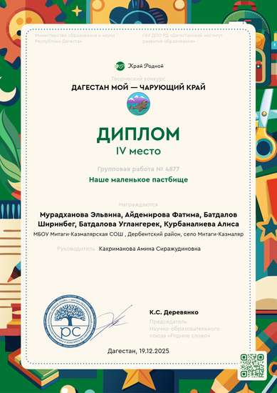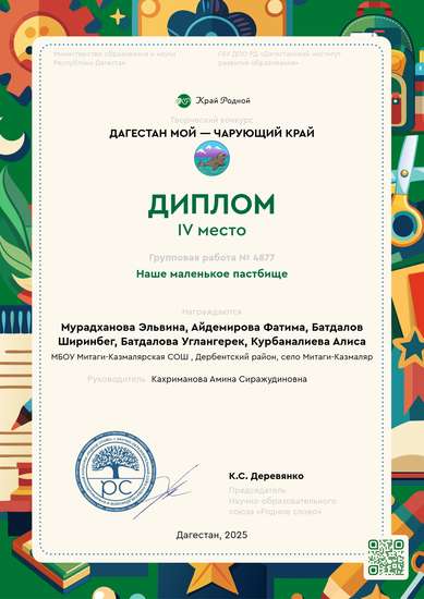 Участник, загрузивший работу:Кахриманова Амина Сиражудиновна