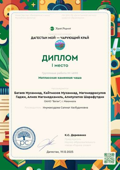 Участник, загрузивший работу:Ибнумаксудова Салихат Хасбудиновна