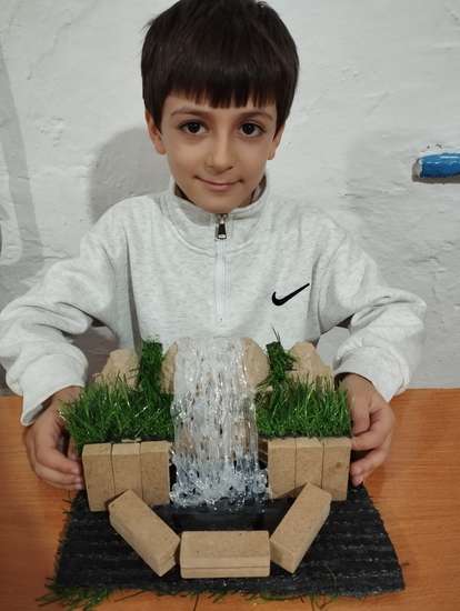Наша работа выполнена в технике объемного моделирования из искусственных материалов. Водопад воплощает мощь дагестанской природы. Ребенок сам собрал элементы пейзажа, чувствуя гармонию с природой. Педагог лишь направлял, помогая создать реалистичную картину дагестанских гор. Этот проект важен для нас, потому что отражает любовь к родному краю и желание передать красоту родных мест.