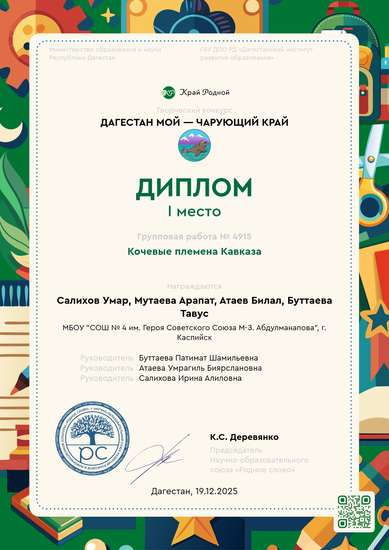 Руководители:Буттаева Патимат Шамильевна, Атаева Умрагиль Биярслановна, Салихова Ирина Алиловна