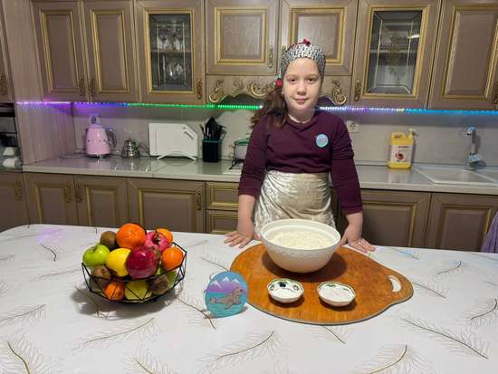 8лет, Буйнакский район село Верхнее КазанищеЗавтрак кумыкской семьи "Къалмукъ чай" , чапилек