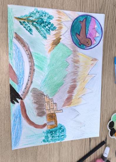 Рисунок: Дагестан- край мой родной! Наш рисунок про Дагестан. На рисунке нарисованы : красивые горы , речка,дома , вся красота Дагестана. Взрослые помогли нарисовать картину, а ребенок покрасил красками . Все делали вместе. Мы хотели передать красоту Дагестана. При рисовании было интересно и ребенку и взрослым. Мой любимый и красивый Дагестан !