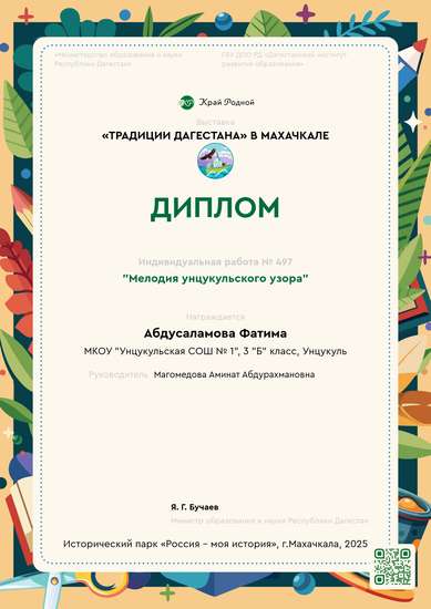 9 лет, Унцукуль"Мелодия унцукульского узора"