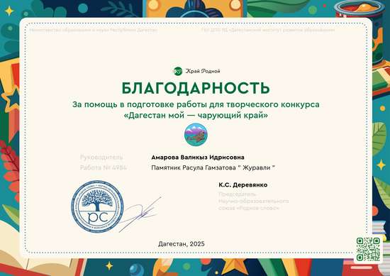 Участник, загрузивший работу:Амарова Амина Исламовна