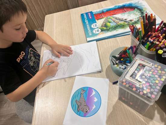 Яикбаев Раджаб совместно с мамой Зиярад Шамшитовной вместе придумали сюжет для рисунка и воплотили его на листе бумаги: рисовали простым карандашом, раскрашивали акриловыми фломастерами. На рисунке изобразили природное богатство республики — высокие горы, высокогорное селение Куруш и горянку, отдыхающую в тишине. "Пойми живой язык природы". Мы очень любим наш - Дагестан!