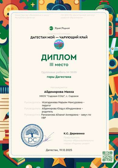 Участник, загрузивший работу:Айдемирова Макка Зауровна