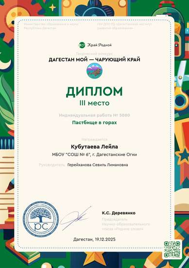 Участник, загрузивший работу:Кубутаева Лейла Назировна