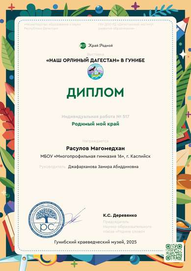 Из бумаги создали макет горы. На вершине сидит в гнезде орел (оригами). И горы и орла покрасил коричневой краской. Из ватных дисков создал иллюзию плывущих облаков. Где-то в горах расположил небольшой домик пастуха (из картона), а внизу прикрепил самого же пастуха и его стадо овец. У меня получилась объемная работа. Эта поделка напоминает мне мой родной край.