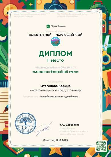 9 лет, с. Ленинаул«Кочевники бескрайней степи»
