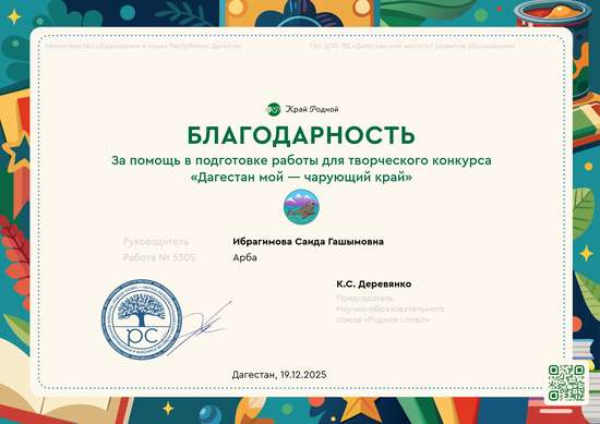 Участник, загрузивший работу:Ибрагимова Саида Гашымовна