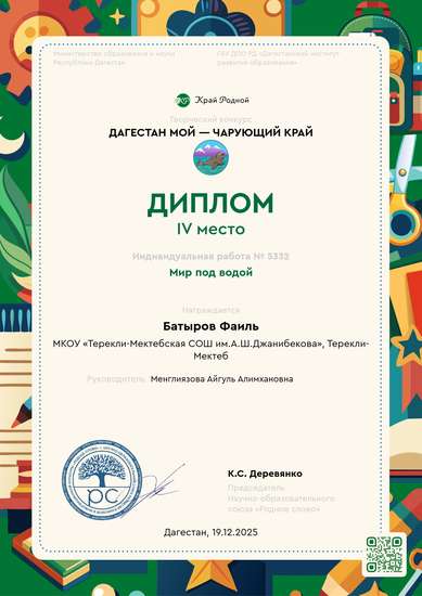 Участник, загрузивший работу:Менглиязова Айгуль Алимхановна