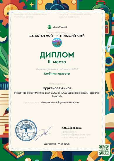 III место на конкурсе Дагестан мой — чарующий край