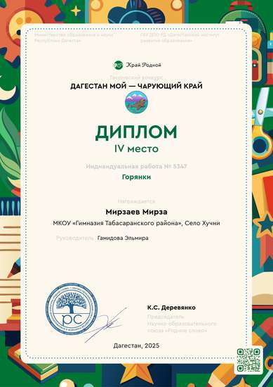 IV место на конкурсе Дагестан мой — чарующий край