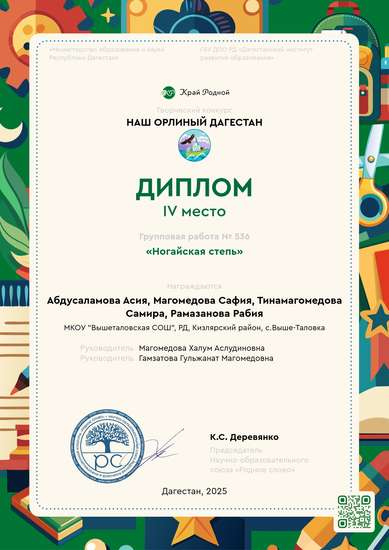 Участник, загрузивший работу:Магомедова Халум Аслудиновна