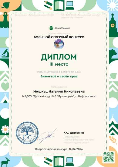 Мероприятие проводилось в детском саду № 6 «Лукоморье» среди воспитанников подготовительной группы. Возраст детей составил 6-7 лет, общее число участников — 10 человек. Занятие проходило в рамках образовательной деятельности. Данное занятие вызвало большой интерес и положительные эмоции у детей. Они активно участвовали в выполнении заданий, проявляли инициативу и стремление к познанию своего родного края. Дети демонстрировали уважение и гордость за свою малую родину, охотно рассказывали о своих впечатлениях и поделились ими с друзьями и родителями. Целью данного мероприятия является воспитание патриотизма и любви к родине у подрастающего поколения. Выбор темы «Знаем всё о своём крае» обусловлен несколькими факторами: - Важностью формирования у детей чувства принадлежности к своему региону и уважительного отношения к истории и культуре народа ХМАО-Югры. - Необходимостью расширения представлений о природе, животном и растительном мире родного края. - Развитием творческих способностей, коммуникативных навыков и познавательного интереса у детей дошкольного возраста.