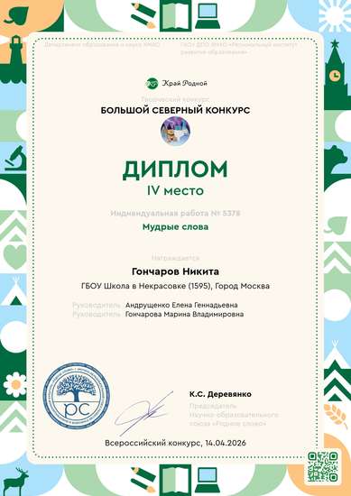 Очень красивая работа! Сразу видно Никита любит природу и разные народы нашей большой страны