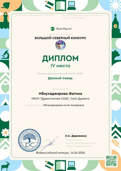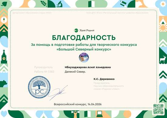 Участник, загрузивший работу:Ибнухаджарова Асият Ахмедовна