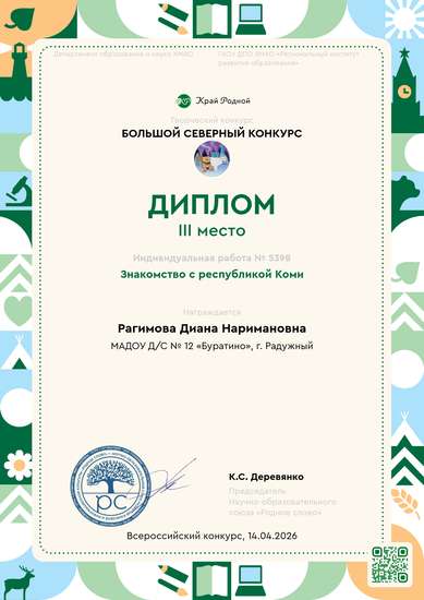 Ребята средней группы отправились в иммерсивное путешествие по северным просторам России, в республику Коми, с целью развития познавательного интереса к жизни, обычаям и традициям коми народа. Дети познакомились с лесными животными, рассмотрели иллюстрации одежды, обуви и головных уборов оленеводов. Узнали, что древним промыслом коми народа была охота и рыболвство. Охотники ходили на лямпах деревянных лыжах и служили средством передвижения по северным снегам. В наше время в Коми проходят соревнования на традиционных лыжах - Лямпийские игры. А также ребята из путешествия привезли памятный магнитик. Ребята вместе с родителями приняли активное участие в физкультурной разминке, где показали свое умение и ловкость. Во второй половине дня ребята сконструировали лисичку в технике оригами и выполнили задания в дневнике путешественника. Таким образом, наше путешествие позволило ребятам расширить кругозор, получить новые знания и навыки, а также укрепило дружбу и взаимопонимание между ними.