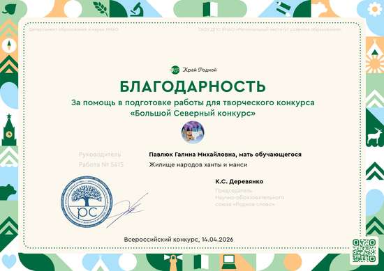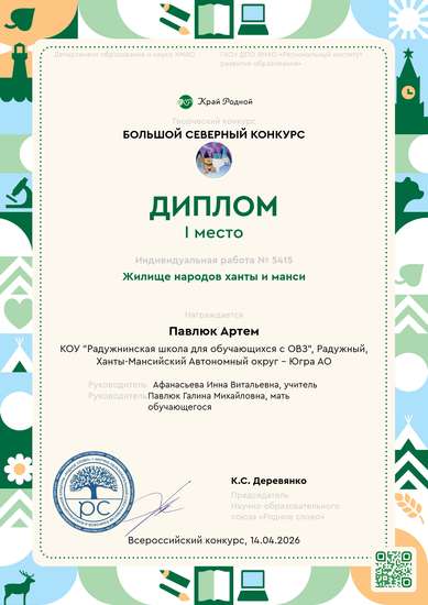 В данное время обучающийся Павлюк Артем с педагогом и родителями готовится к исследовательской работе по теме "Жилище народов ханты и манси". Поэтапно ведется изготовление деталей поделки (оленя,саней,собаки,печи,медведя,сказочных персонажей, утвари и др.) и их детальное изучение. Готовим выступление с показом макета, фотографируем каждый кадр и включаем в отчет по исследовательской работе.