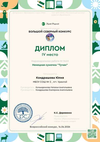 9 лет, пгт. УренгойНенецкая сумочка "Тучан"